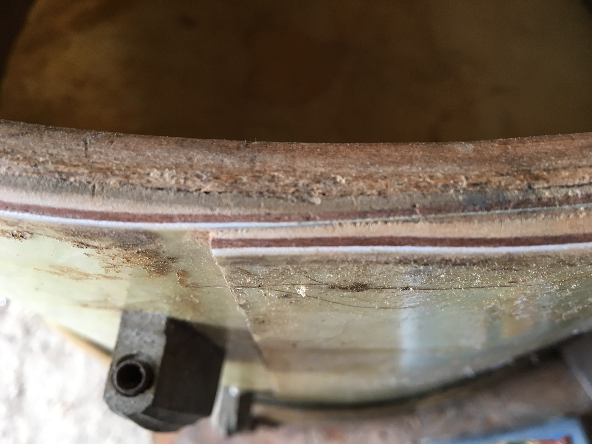 Au passage, zoom sur les plis et sur le rhodo... coincé avec. Notez la sur-épaisseur qui n’aide en rien au forçage de peau. Pouvaient se gausser de Ludwig, tiens.