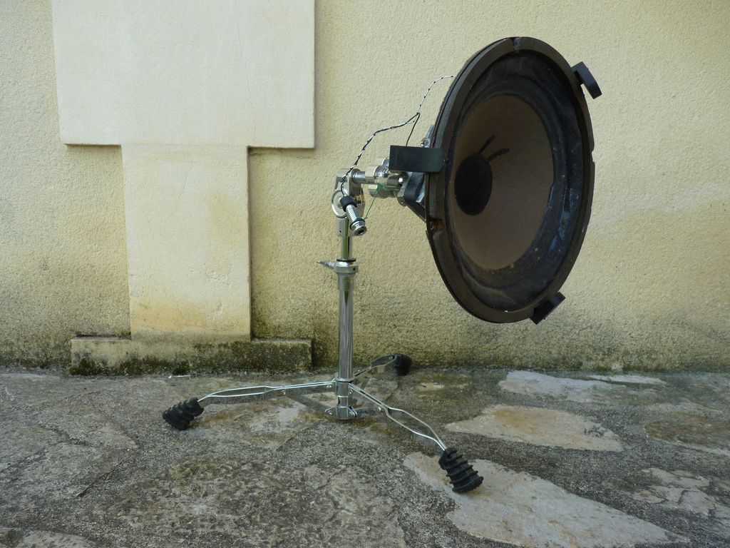 Au départ, il s'agit d'une gamelle de 8, récupérée sur une enceinte "hifi" dont un des tweeters a mourru et installée dans un pied de cc à 2 sous (maxi).