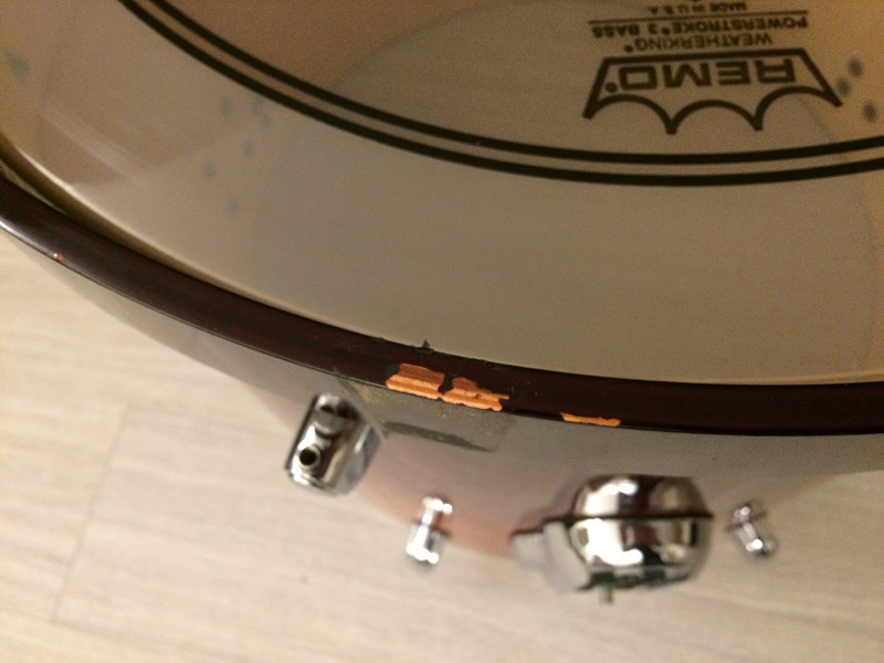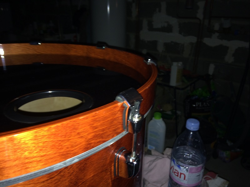 J'ai pas touché aux crochets de la peau de frappe car ils sont encore plus collés au cercle que ceux de la peau de réso, mais à mon avis je vais aussi y perdre des petits bouts de vernis.
