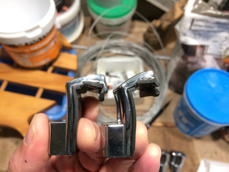 J'ai un peu peur de tenter la manip et que ça casse complètement le crochet, outre le fait que le caoutchouc est un peu sec et risque de casser en même temps et que le chrome risque de partir, ou d'être cassé à la jointure.