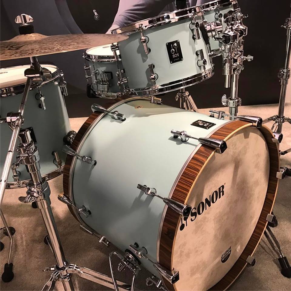 The all SQ1 Series features 100% Birch Shells , great looking matte-lacquer finishes, and contrsting bass drum hoops. The German built series has Sonor's new Sound Sustainer isloation brackets on all toms and floor toms, which eliminats the need for bulky mounts and allows the shell to resonate freely. Another innovation from the engineers at Sonor.