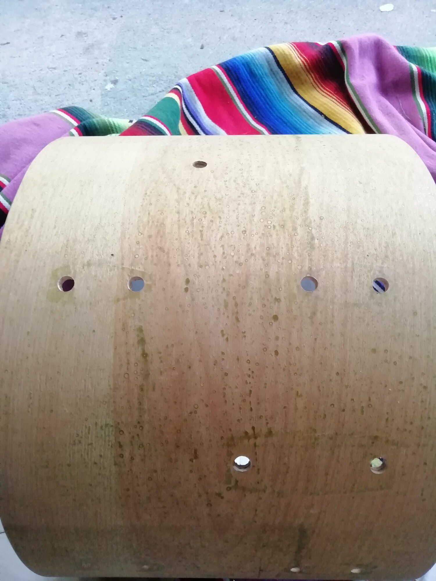 Au vu des griffures très prononcées un peu partout sur le fût, pas moyen de rattraper ça avec mes deux mains gauches de vernisseur. De toutes façons, je me vois pas avec un 16 verni et le reste en rodho. Sachant que les autres futs sont clairement pas vernissables, au vu de la qualité de finition. Avec mélange de bois et raccords qui sautent aux yeux.