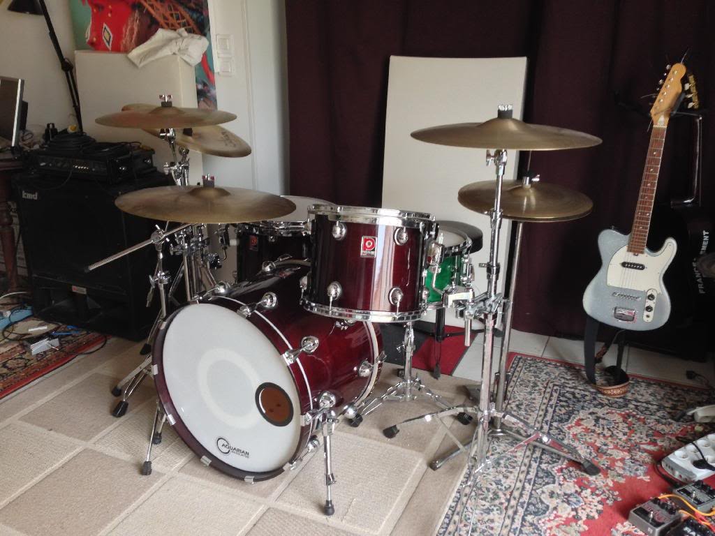 Bon les fûts changeront pas, par contre je change les cymbales, je vais tout passer en Avedis Medium (Crash 18, Thin Crash 18 et Ride 20).