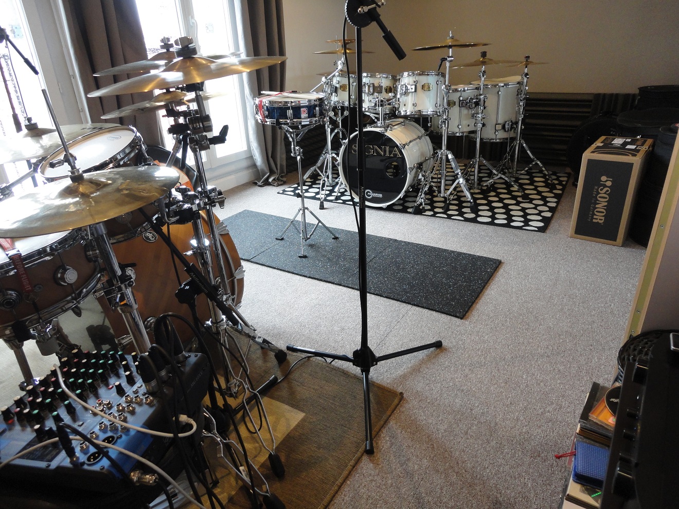Deux nouvelles photos pour cause d'amélioration de hardware ! Perchettes et charley DW au programme ! Seuls 3 pieds de cymbales TAMA HC73BWN demeurent ! Mais ils remplissent parfaitement leur rôle ! (Et coûtent moitié prix des stands DW !)