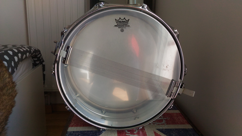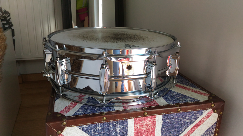 la peau de frappe est jouée mais même pas creusée, la caisse elle-même est une Monroe d'une dizaine d'année, première main d'un batteur hyper soigneux mort à peine un an après l'achat. elle est vraiment comme neuve et stockée dans des conditions optimales; Thomann en demande 689€ sans housse; pour 550€, dans sa housse (état neuf) elle est à vous.