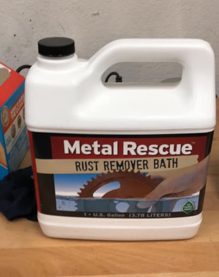 ACHTUNG : bien rincer ses pièces ensuite - je retrouvais de la poudrasse de rouille agglomérée (elec stat ?) dans des coins planqués en remontant mes coquilles etc - quand je fais du zèle, je trempe tout dans un peu d'eau distillée tiédie, en brinquebalant bien le bordel quand la pièce est trop anfractueuse, et je fais sécher sur un rack au dessus du poêle (attention aux plastiques et caoutchoucs !)