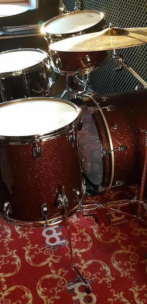 Le kit est en est très bon état et n'a servis que lors d'une tournée. Quelques égratignures par ci par là mais à part ça elle est impec! La finition en Burgundy Red Glitter est vraiment super belle