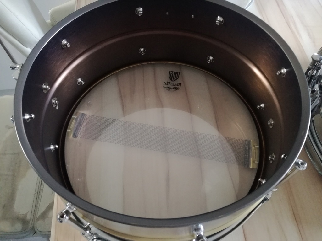 Je vous présente ma troisième caisse claire, une BlackDawg 14x6.5 en finition Antique Brush.