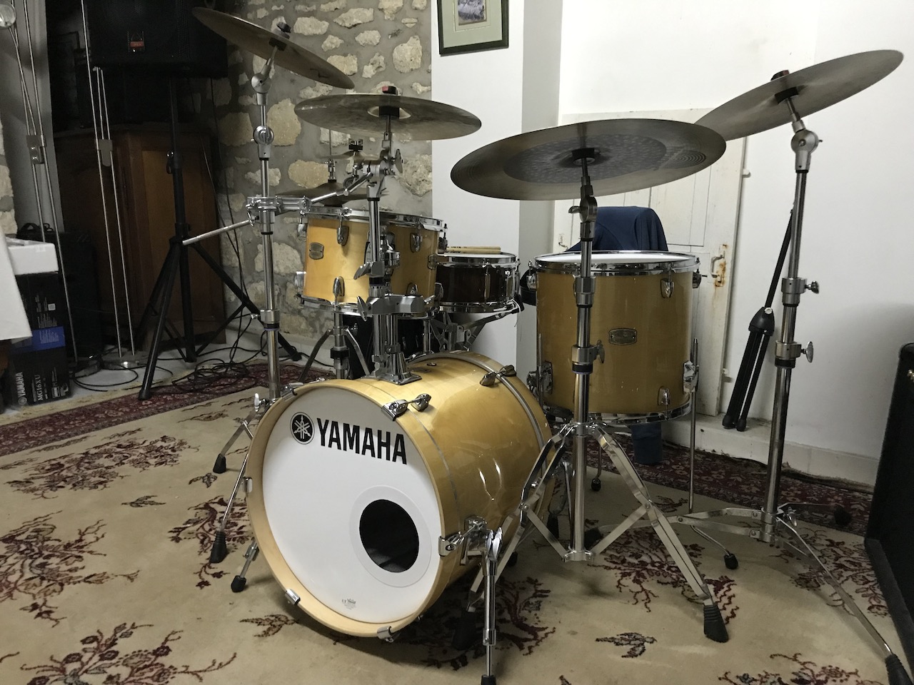 batterie Yamaha Stage Custom Bop Kit 18x15/12x08/14x13, high gloss natural wood (2018), avec support CL945LB et non le TH904 des photos (1 poc sur un cercle GC)