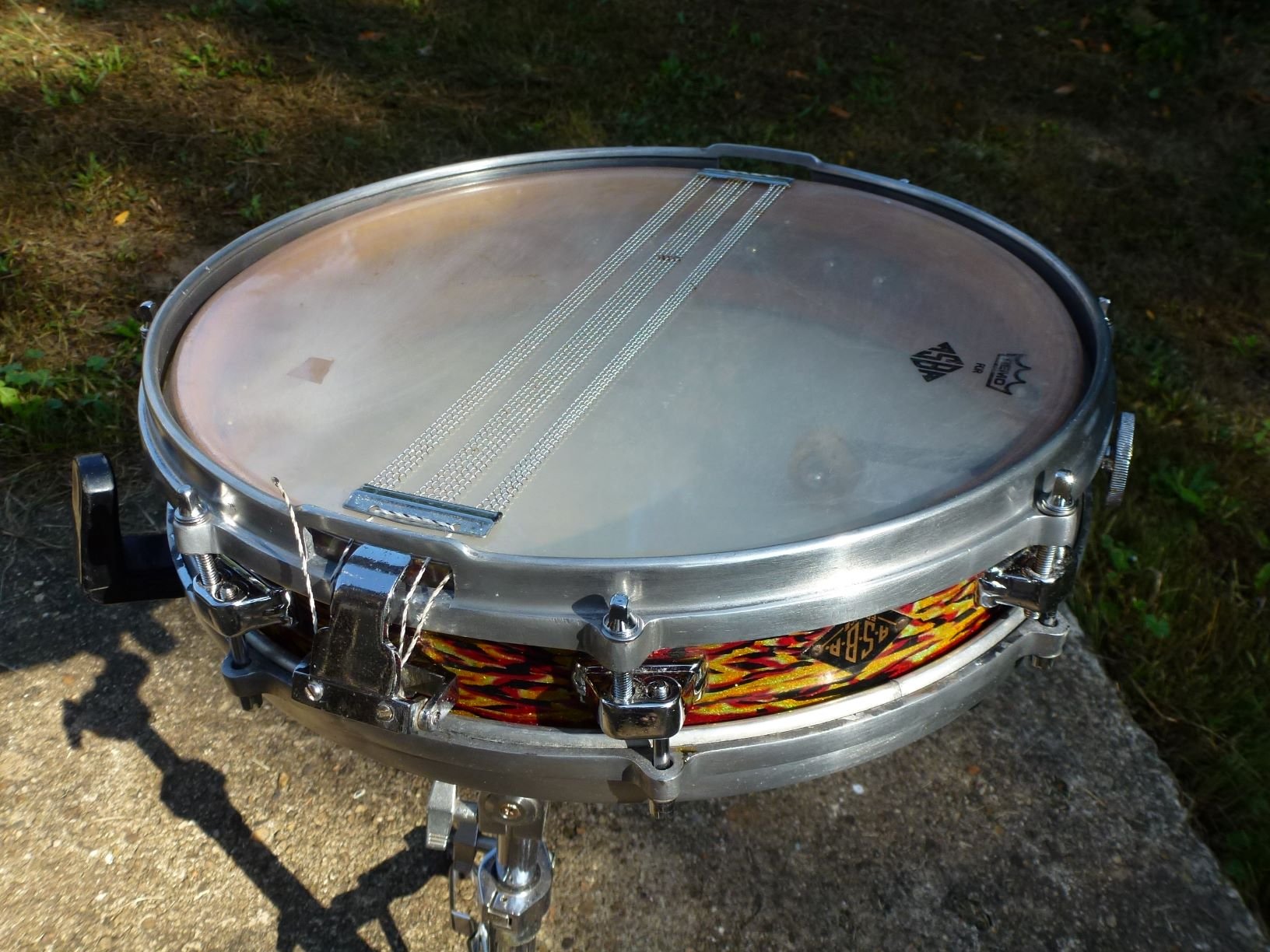 encore une sauvée de l'oubli: 1964, un corps à rhabiller et un bidouillage de tirants en croix pour la frappe avec des carrés en réso. sacré boulot de récupération des cerclages pourris à l'os, au final laissés en alu brut belgomisé: c'est un peu satiné et c'est très bien comme ça.. merci à Philippe K Bidi pour la caisse d'origine , polyrey façon palissandre du Honduras avec extra-holes, qui sera à qui la voudra (bonne base pour un projet)
