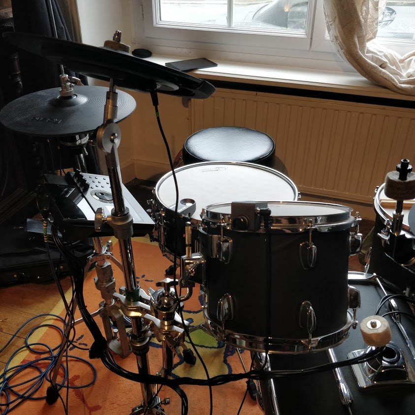 Maintenant je ne me fais plus de noeud au cerveau dans les petites salles : un module electro pour maitriser le volume et un kit avec capteurs et peaux maillées pour le look.