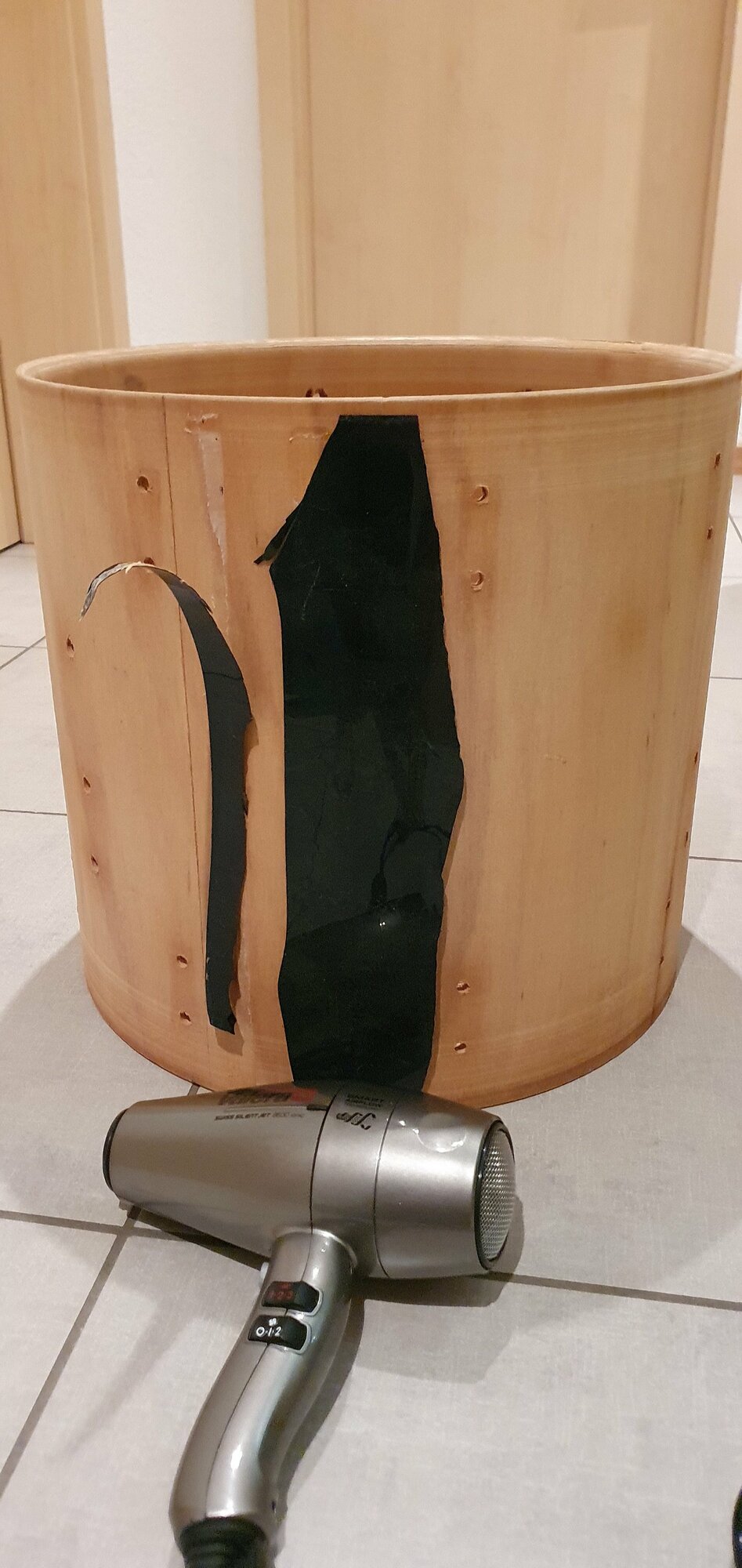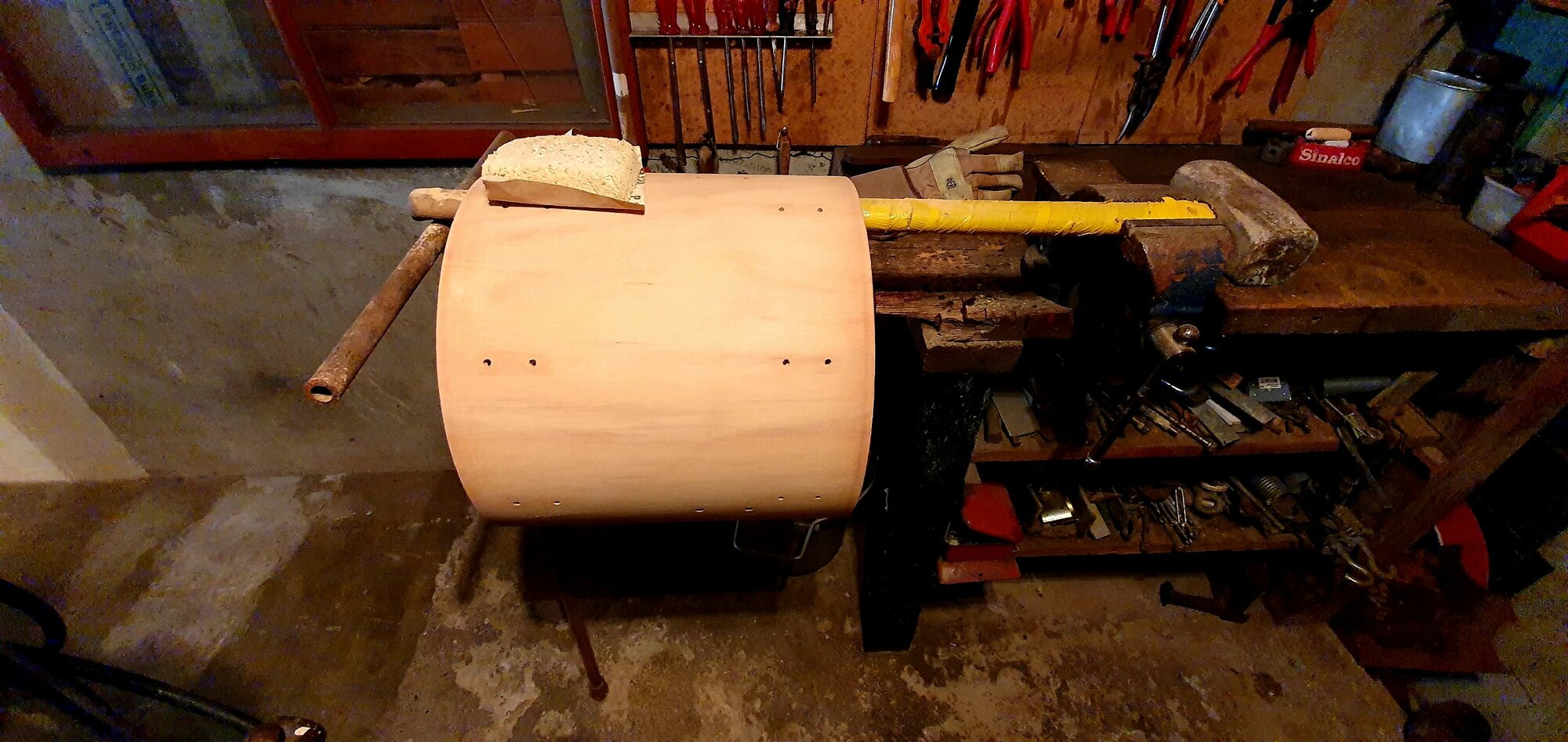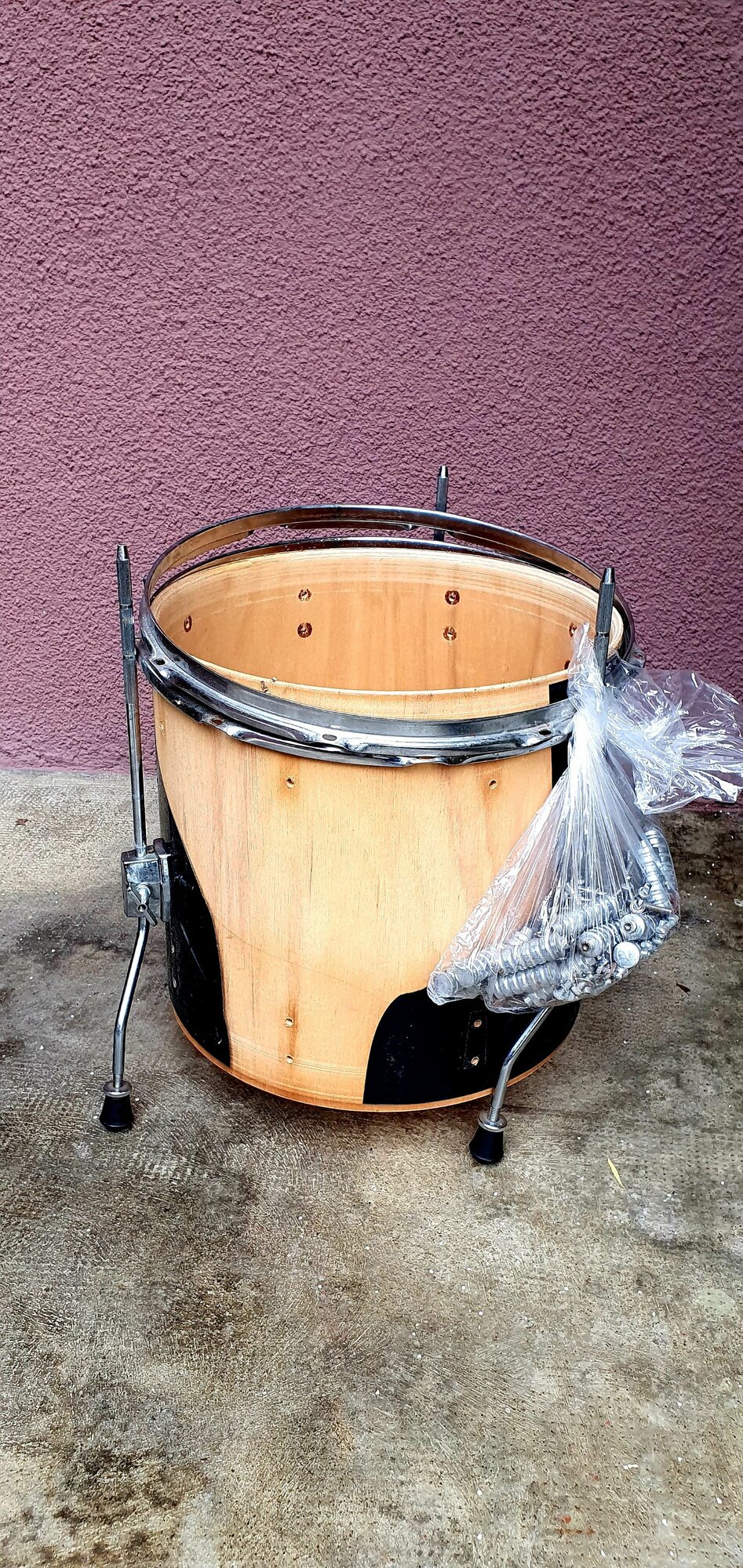 En fouillant dans mon bordel trouvé en dechetterie j'ai trouvé de quoi me faire une caisse claire de 16" avec un fût sur lequel je vais mettre des lugs d'un fût Suisse de marque Imperial.