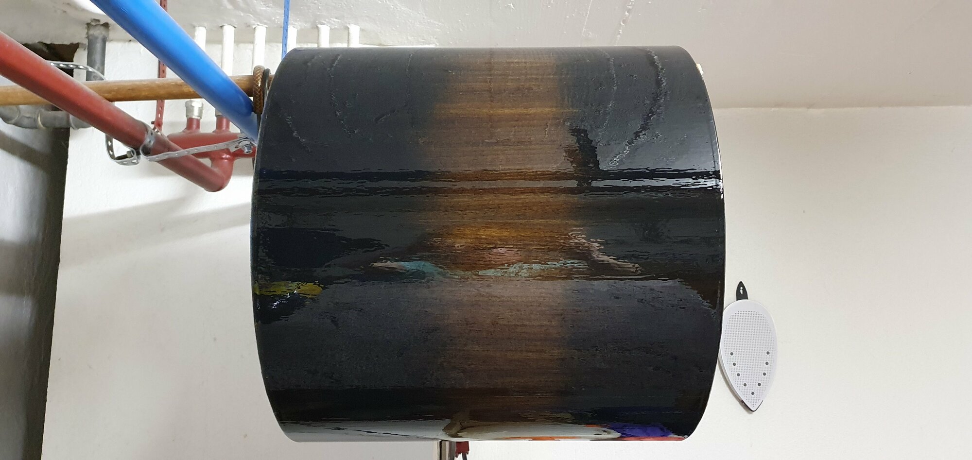 J'ai dû faire le burst à la bonbonne et ça partait mal. Content sur le moment j'y ai pensé toute la nuit suivante. Et le lendemain (un dimanche) j'ai essayé d'y remédier et ,sans le savoir, j'ai utilisé une technique employée pour faire l'effet smoke burst. Ça consiste juste à donner un coup de ponçage avant de mettre la première couche de vernis. J'avais trop de partie noir et la transition était trop brutale. En ponçant j'ai pu adoucir la transition et avoir un peu plus de bois brut au milieu et uniformiser un peu.