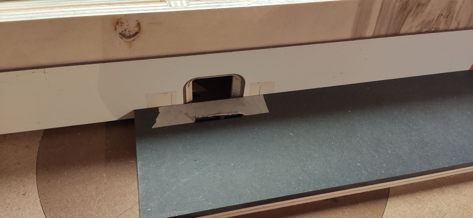 Comme pour le guide d'onglet, j'attrape les chutes d'un plateau Valchromat/CP qui a mal terminé, et c'est parti pour les découpes.