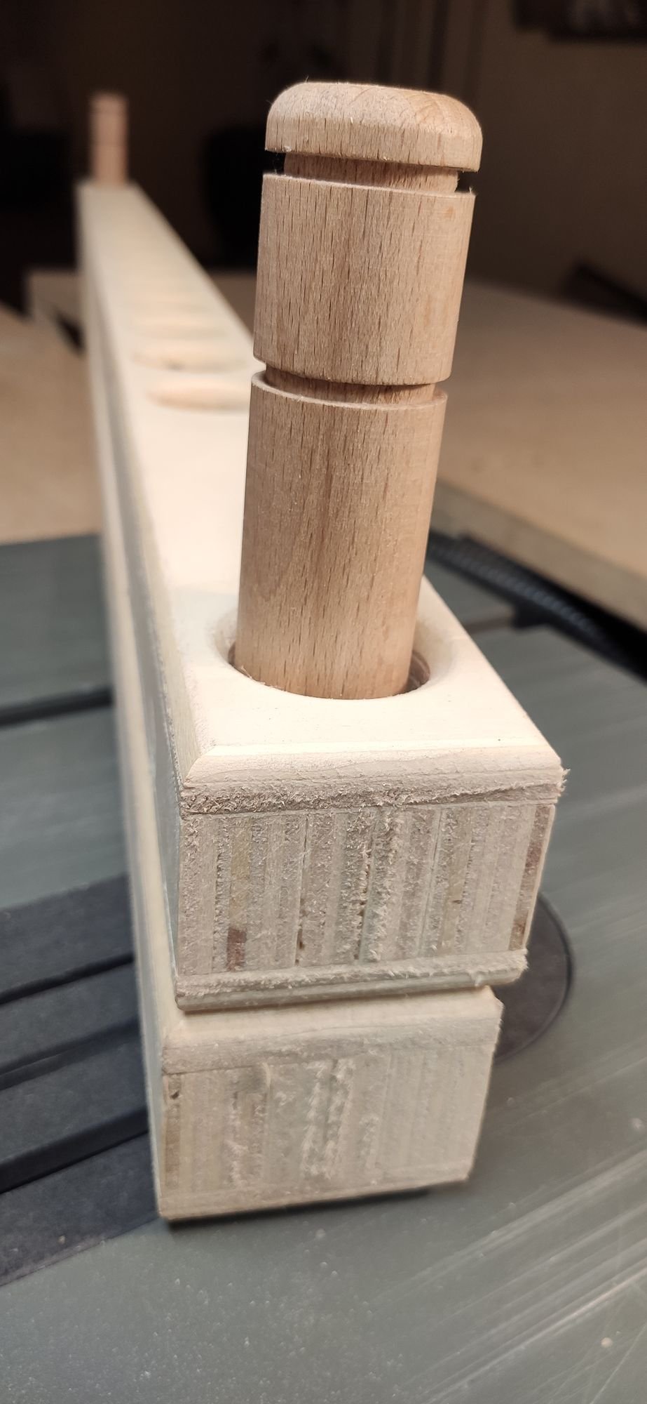Le côté défonceuse de la table (que je vais détailler, projet en cours) est prévu pour accueillir des fûts jusqu'à 24" sans qu'ils dépassent de la table. Jamais testé encore, mais y'a moyen de (re)faire des chanfreins. Un volontaire ? Faudrait juste upgrader la fraise 45° du pack débutant Castomerlin pour éviter les déconvenues.