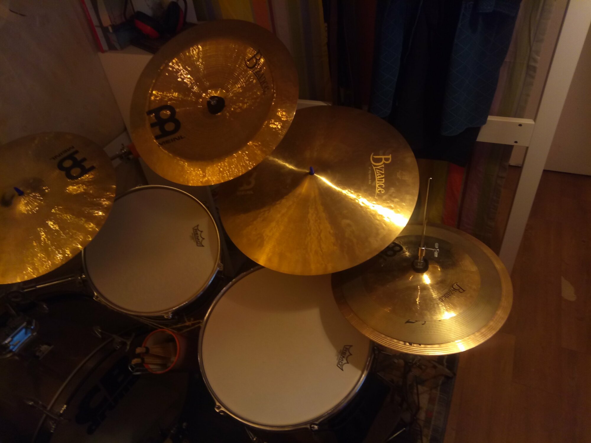 En termes de Cymbales c'est tout du Meinl, j'ai récement trouvé une affaire sur leboncoin du coup je me suis fait plaisir.