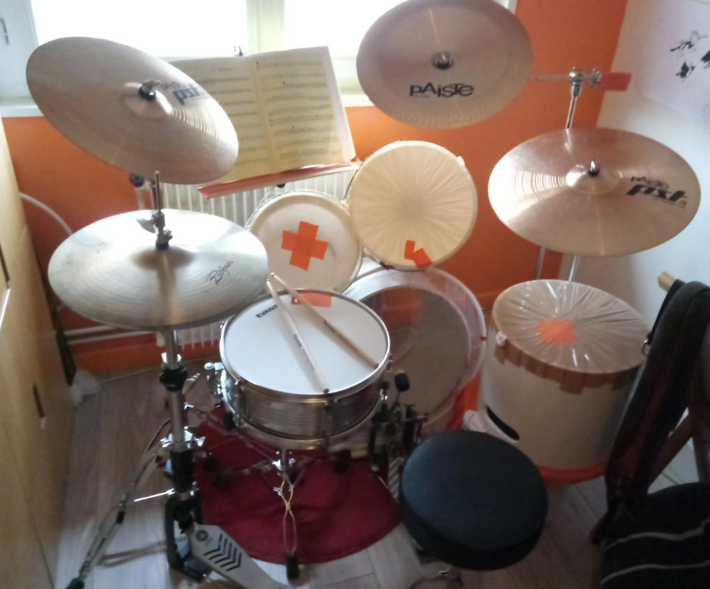 En termes de tambours j'ai un kit CB Drums avec des toms en 12,13,18 et une grosse caisse en 22