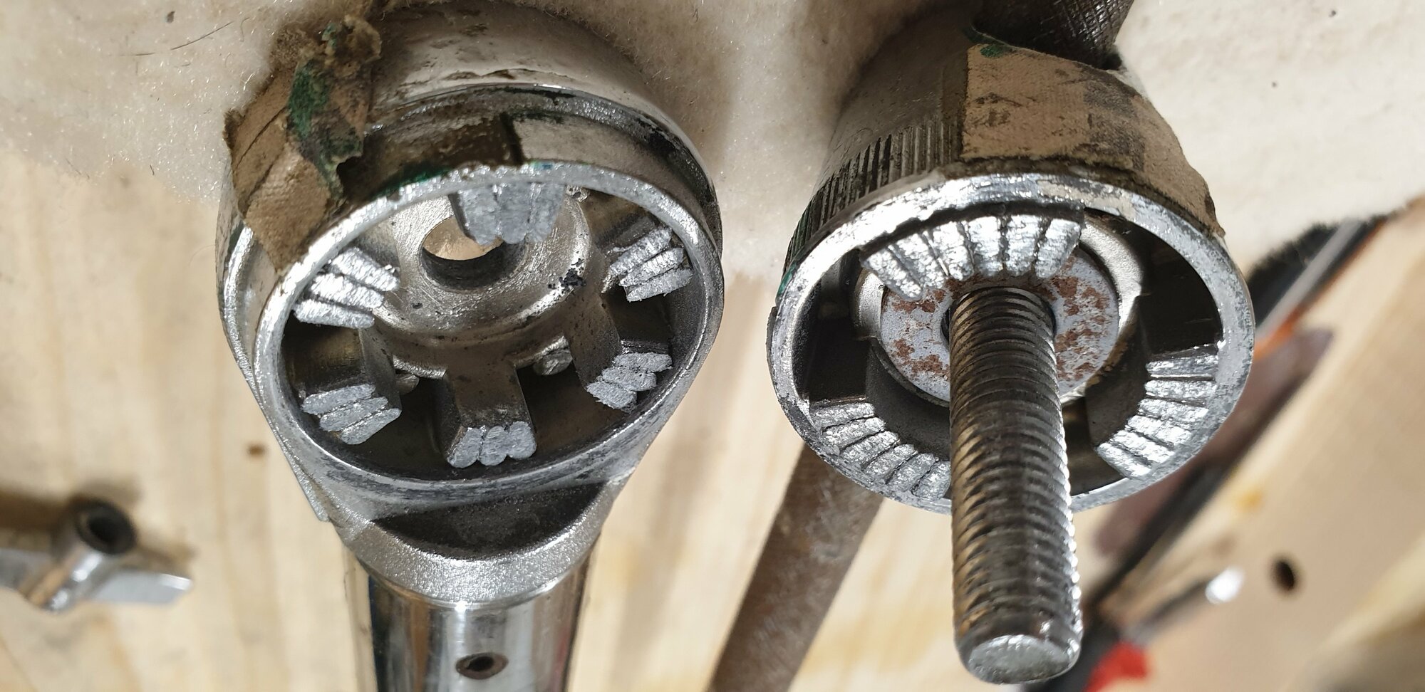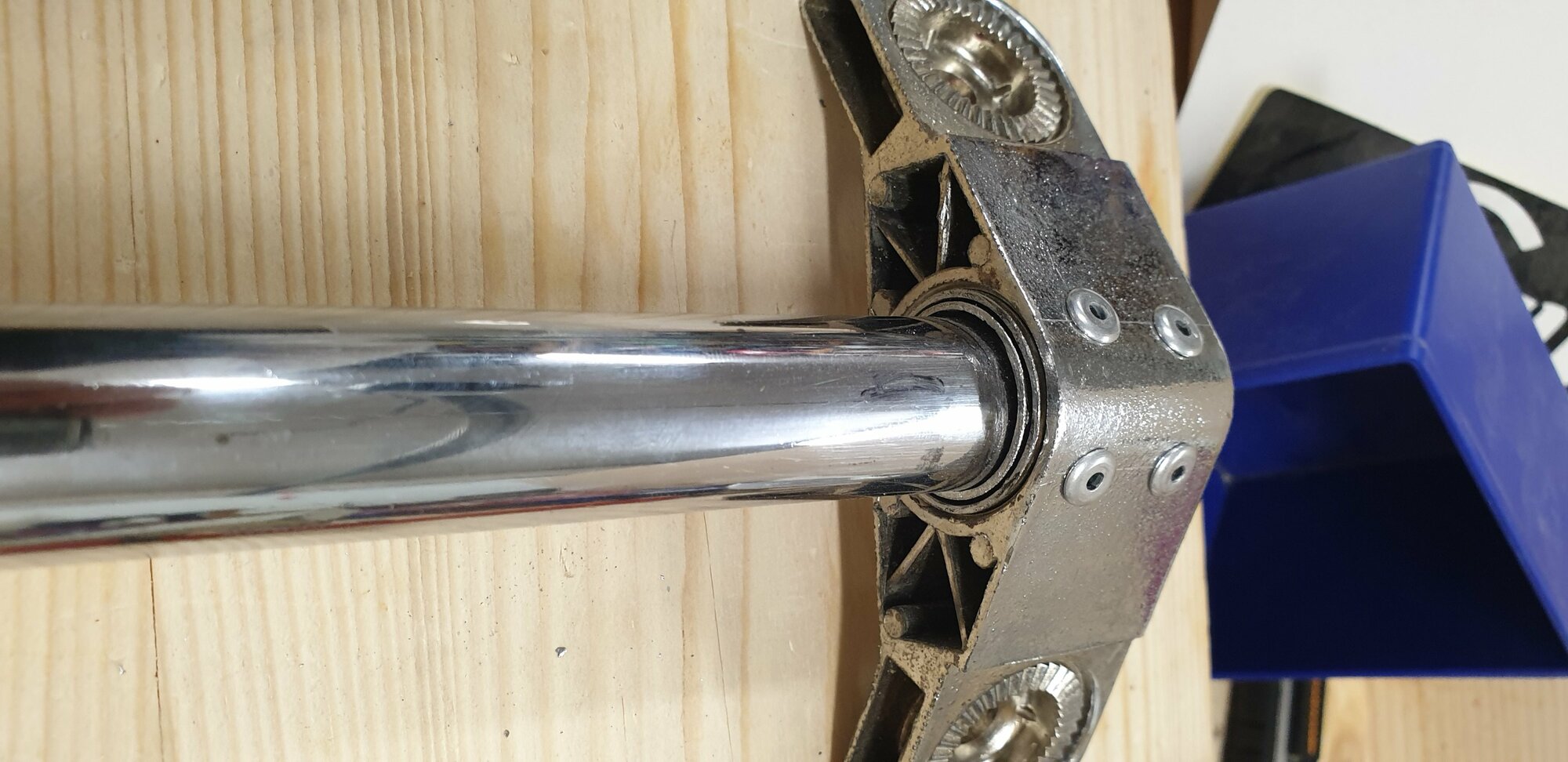Je fais la même chose sur la potence et je coupe à raz la tête pour prélever la bague correspondante avec les trous des goupilles.