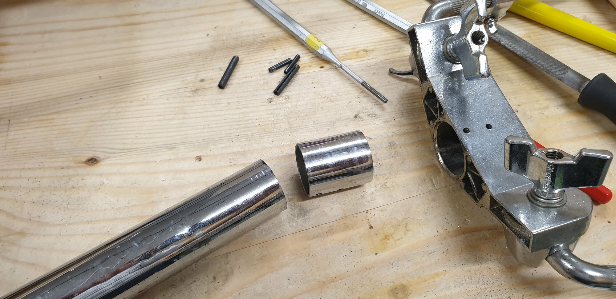 Ce pied double tom servira pour la ASBA métal que je suis en train de nettoyer.