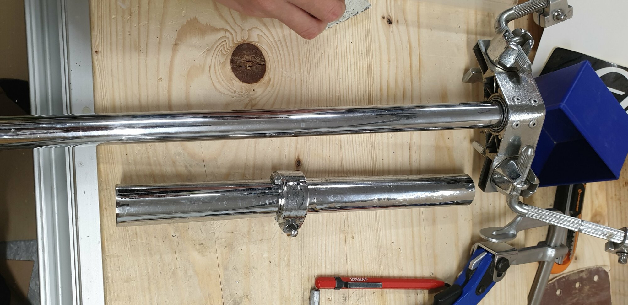 A ce moment, l'idée est de prélever le tube 22mm de la perchette morte qui rentre comme papa dans maman un jour de fête dans le tube de la potence et de faire un trépied double tom avec le Spartan.