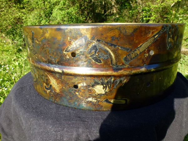 J'ai déjà utilisé ce procédé d'ammoniaque (mais sans oignon) pour revieillir des cymbales, c'est assez bluffant... Très belle effet sur cette CC