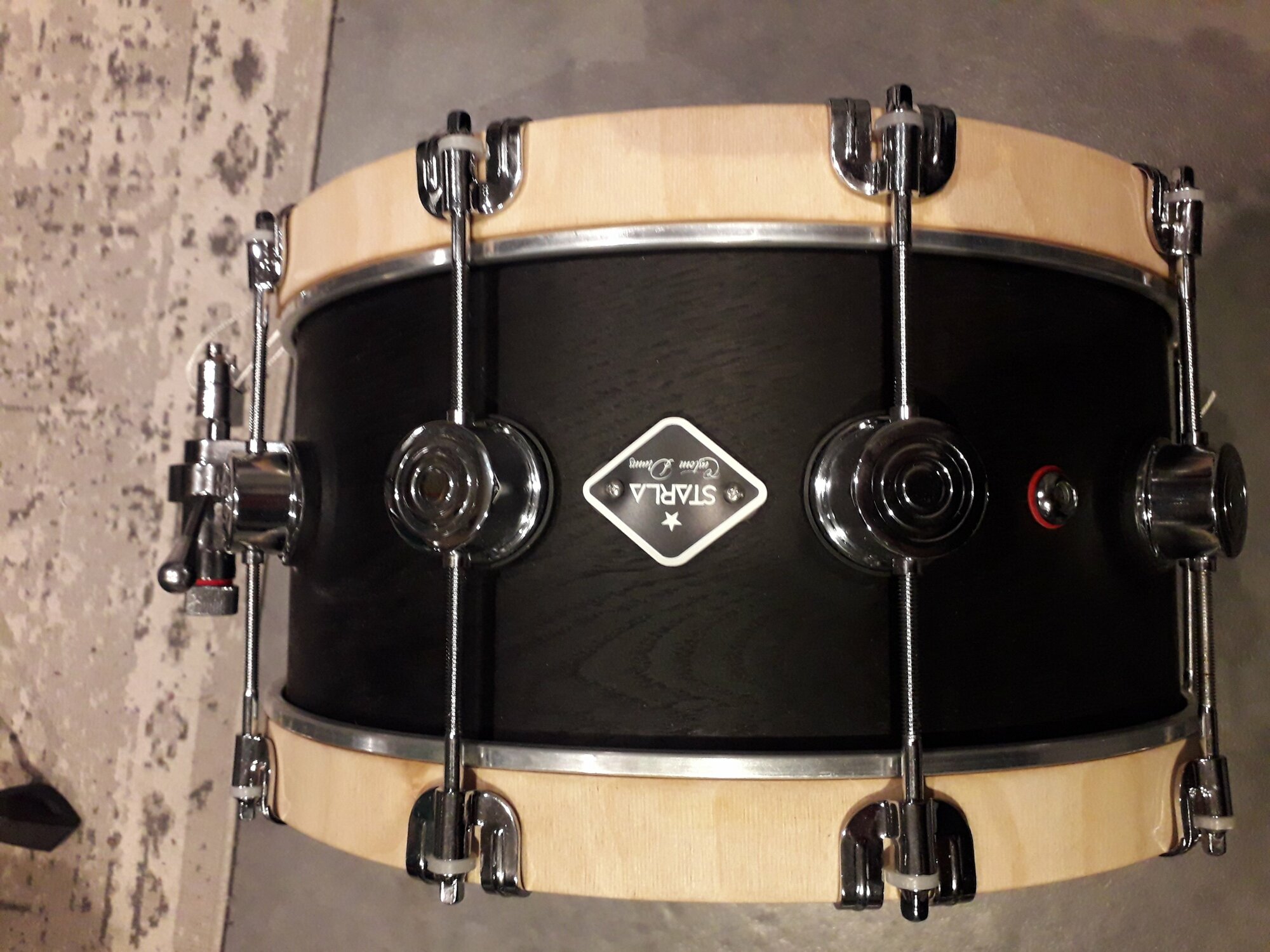 Du coup on est sur un fût 14x6,5 érable 6 plis avec renforts. Chanfrein 30° et finition huilée chêne noir des tourbes sotheysay. Cercles bois en bouleau.