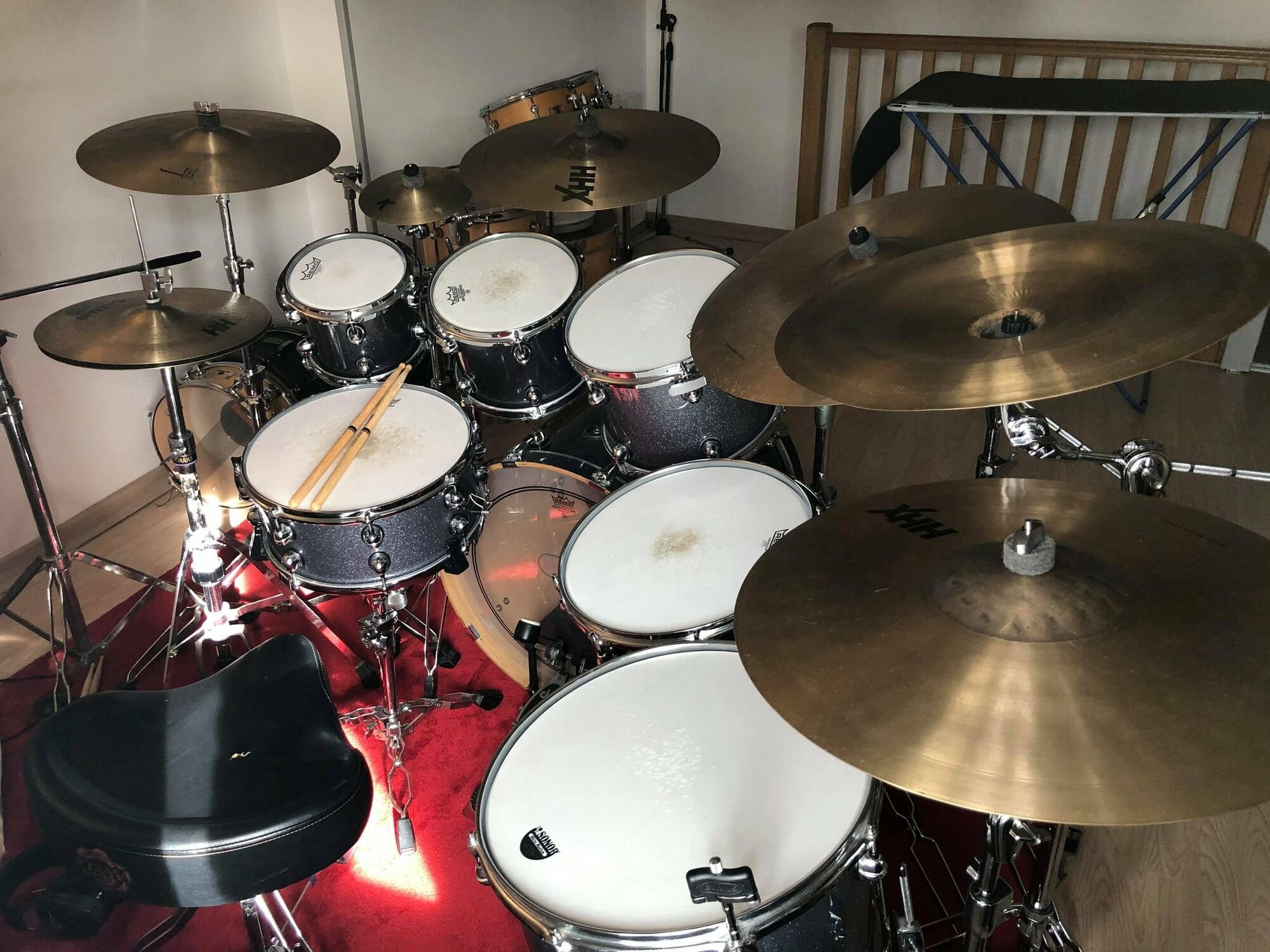 Quelques photos récentes avec la config complète : 8-10-12-14-16, 22x18, caisse claire 14x6.