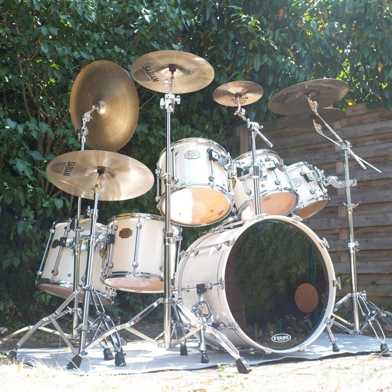 - Matos : Premier Signia Coral White 10 fûts. Cymbales Sabian / Ufip