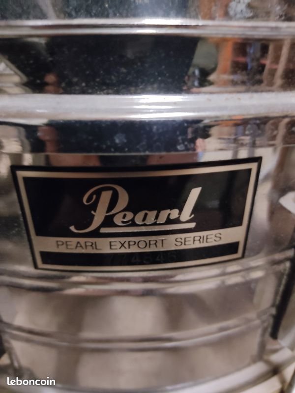 Batterie Pearl Japan Vintage, cerclage métal chrome, 4 futs concert sans peau de résonnance,1 tom basse sur pied+2 toms montés+ 1 tom en rab,caisse claire Pearl Export séries,hihat Basix, pédale GC Yamaha,fixation toms : support Roger+ 2 Pearl Optimount, 2 pieds cymbales dont je ne connais pas la marque, 1cymbale Istanbul et 1 cymbale Sabian (félée,voir photo).
