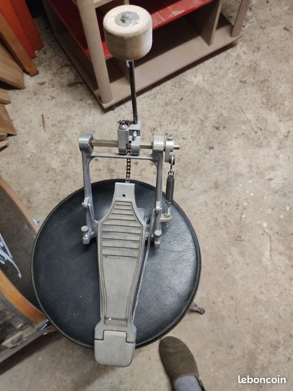La peau de grosse caisse est d'origine, soit presque 30 ans, ça laisse supposer qu'elle n'a pas trop pris de coups.