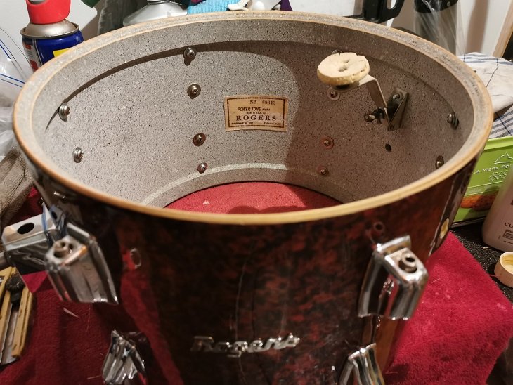 La Rogers est incomplète (il manque un cerclage de 24 ainsi que 10 crochets et tirants. il manque aussi 2 cerclage 18 et une sourdine)quelques pièces ont malheureusement été remplacé par du japonais, c'est moins joli, :( mais plus presque...donc voila au boulot. :ouui: