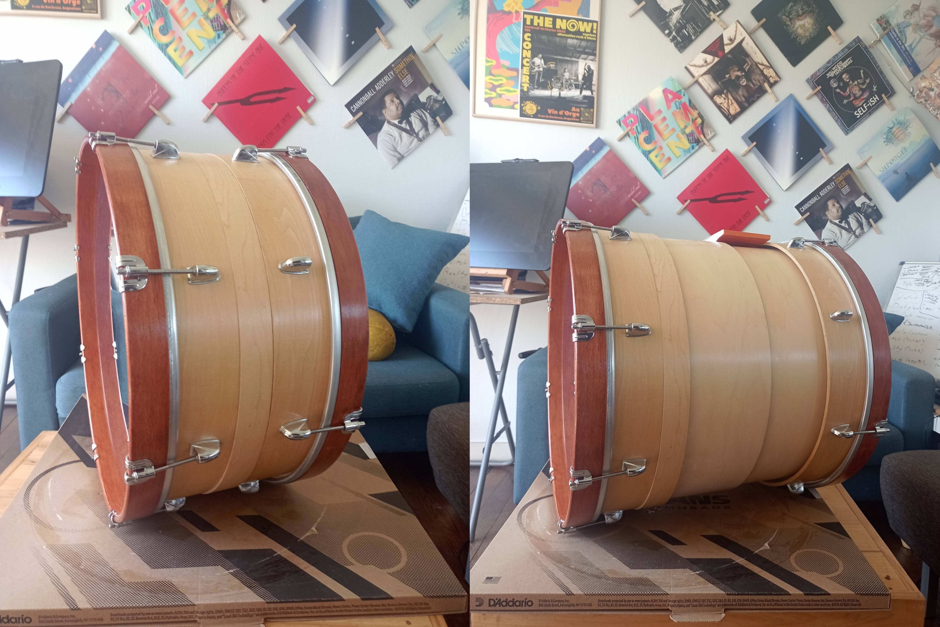 Eh oui la grosse caisse donc passe de 20x9 à 20x20!! Et c'est du vrai bois dedans: