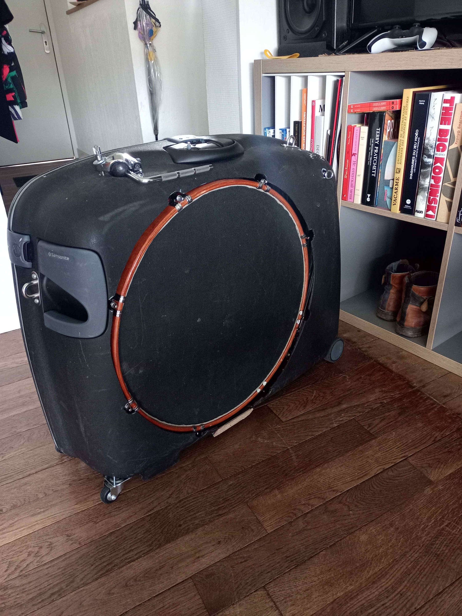 Une des raisons pour laquelle j'ai opté aussi pour une peau est le volume. Avec le charley "rock" criard que j'ai, et cette caisse qui envoie tout autant, juste cogner sur une valise fait pale figure. Et très "poc poc" en son. Le bassiste m'entends moyen.