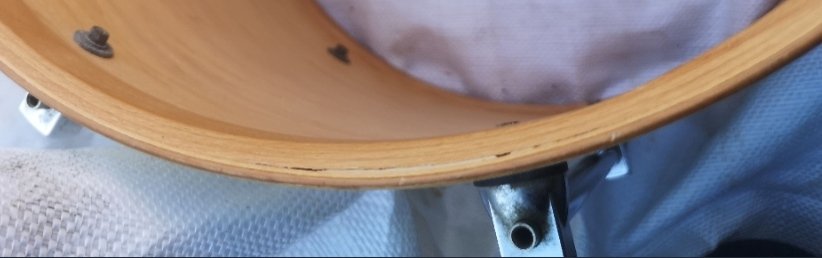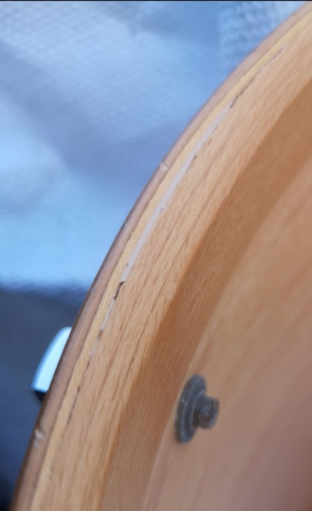 Dans ma quête d'un tom basse qui fait bien baoum bien bas, je suis en train de chiner un tom basse signia 16" miraculeusement apparu sur la toile, et le vendeur m'avertit de plis décollés au niveau du chanfrein sur environ 5 cm, ajoutant que c'est "minime mais visible". Le tom a entre autres servi en grosse caisse (avec un adaptateur évidemment) en config jazette ...
