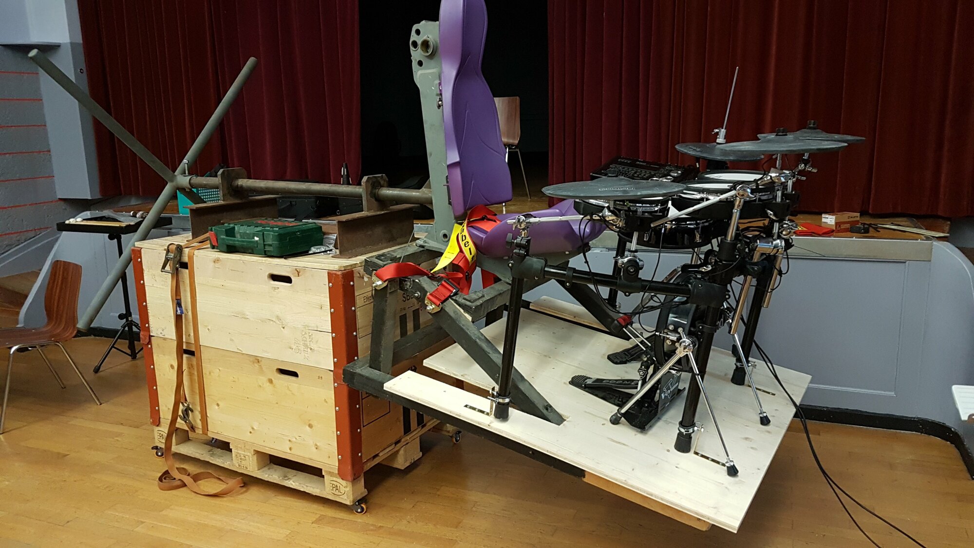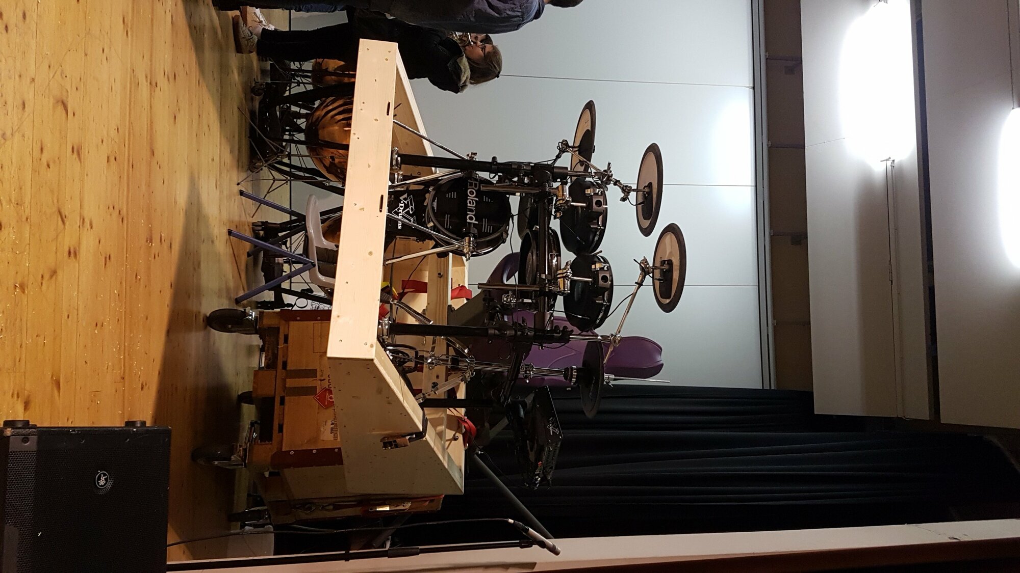 Avec une batterie acoustique il faudra sûrement faire une structure soit plus solide en bois, ou en métal ça serai mieux...bien sur après il y aurait le problème du poids à faire pivoter...