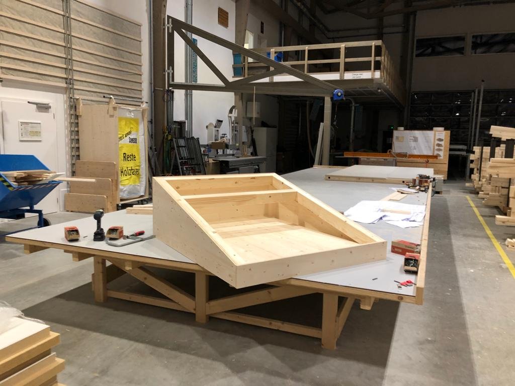 On a redémonté toute l'installation, enlevé les 350kgs de contrepoids, retourné la palette, renforcé, remis les contrepoids et remonté tout le bouton.