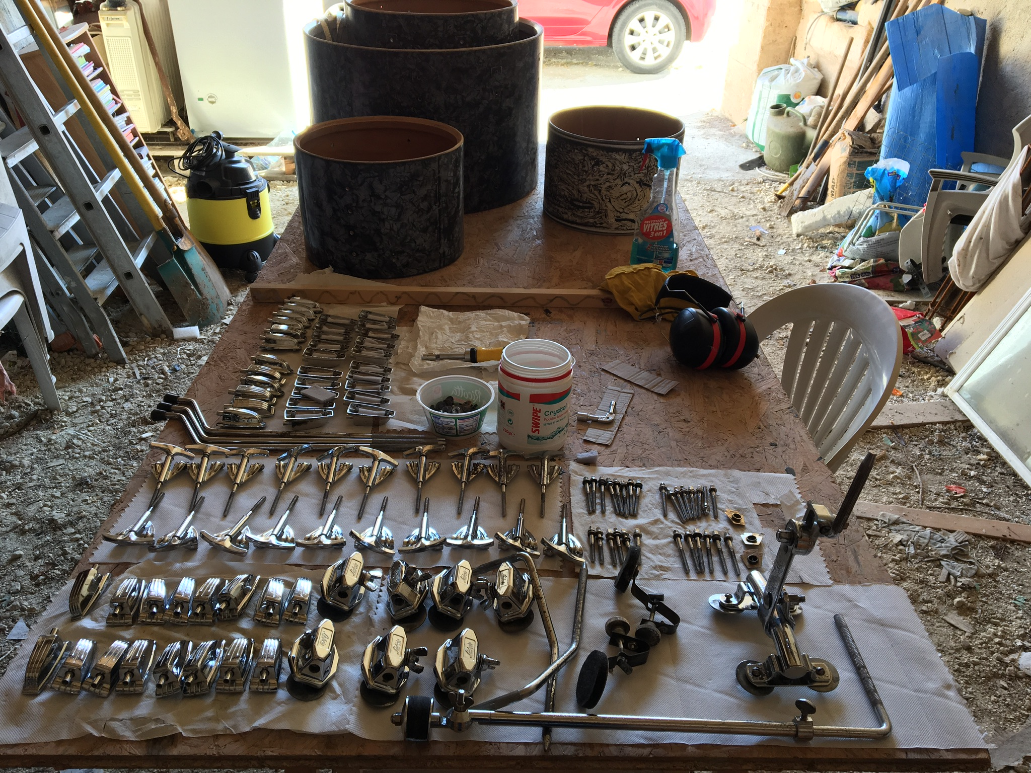 Le plus chiant est hors champ : toutes les pièces peintes en gris mat. Quand je dé-peinture, le chrome est attaqué voire absent.