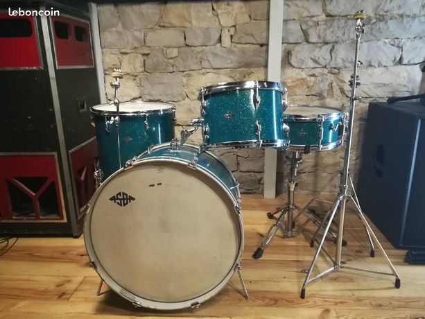 Les fûts sont en parfait état avec la clé de réglage présente sur chacun. Perche de cymbale gc, pied de Charley, pied cymb droit et attache Tom d'origine, (c'est rare que tout soit présent).