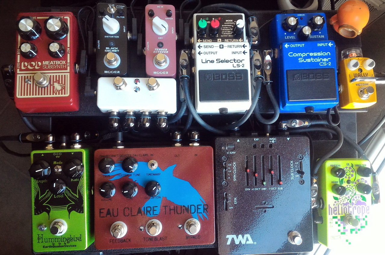 J'avais la Hotone Wally et la Dwarfcraft Eau Clarie Thunder bien avant qu'il n'en parle (je bave toujours sur une Great Destroyer d'ailleurs en fuzz secondaire), la Meatbox je connais depuis 20 ans (merci à lui pour avoir motivé DOD à relancer la production), et j'ai découvert Pedals and Effects en cherchant des infos sur la TWA Great Divide 2.