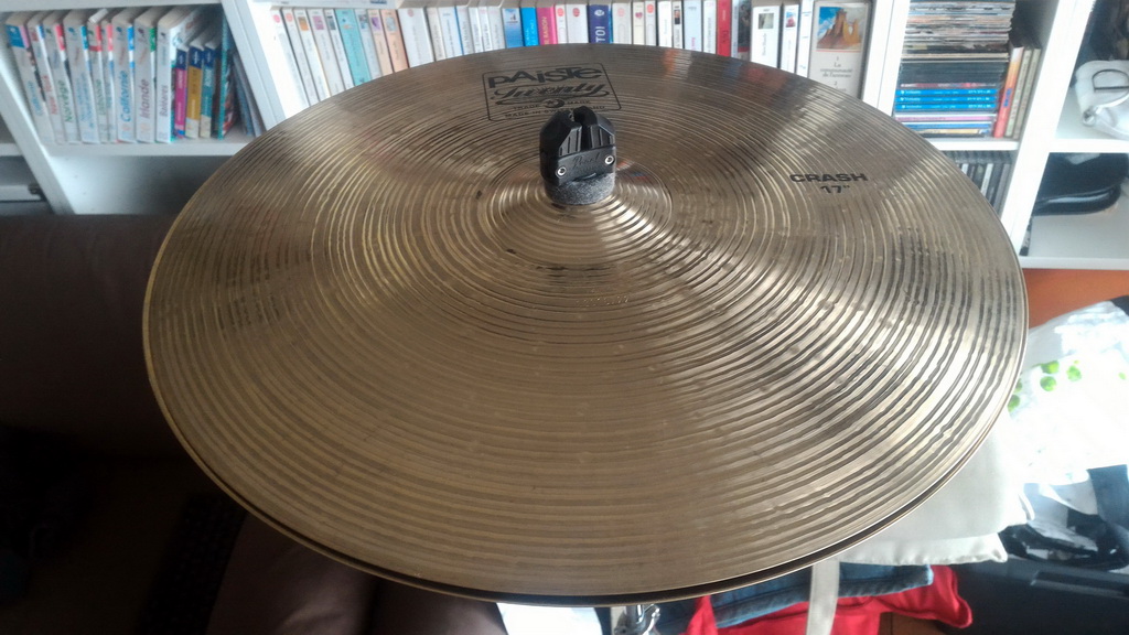 Crash Twenty 17" dessus, metal crash Twenty Custom 17" dessous. Notez au passage que le pouce Custom est plus généreux.