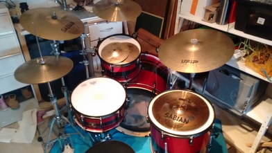 - Matos : Premier Signia Coral White 10 fûts. Cymbales Sabian / Ufip