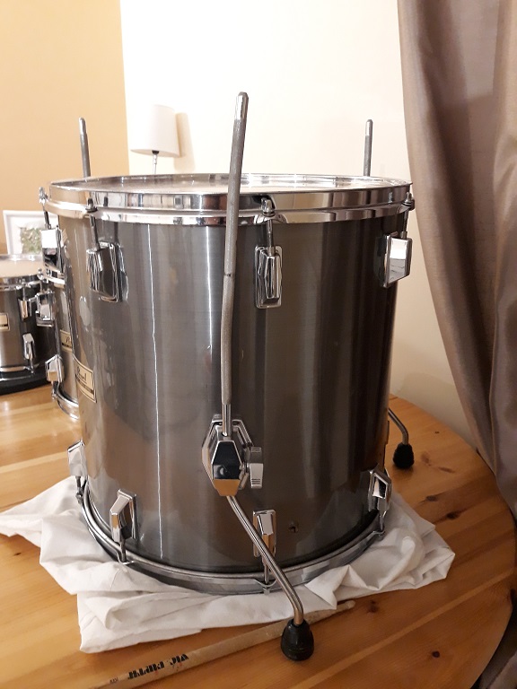 Toujours dans le voilage, l’un des pieds de tom est tordu, heureusement ce n’est pas gênant en pratique, je n’ai même pas essayé de le redresser.