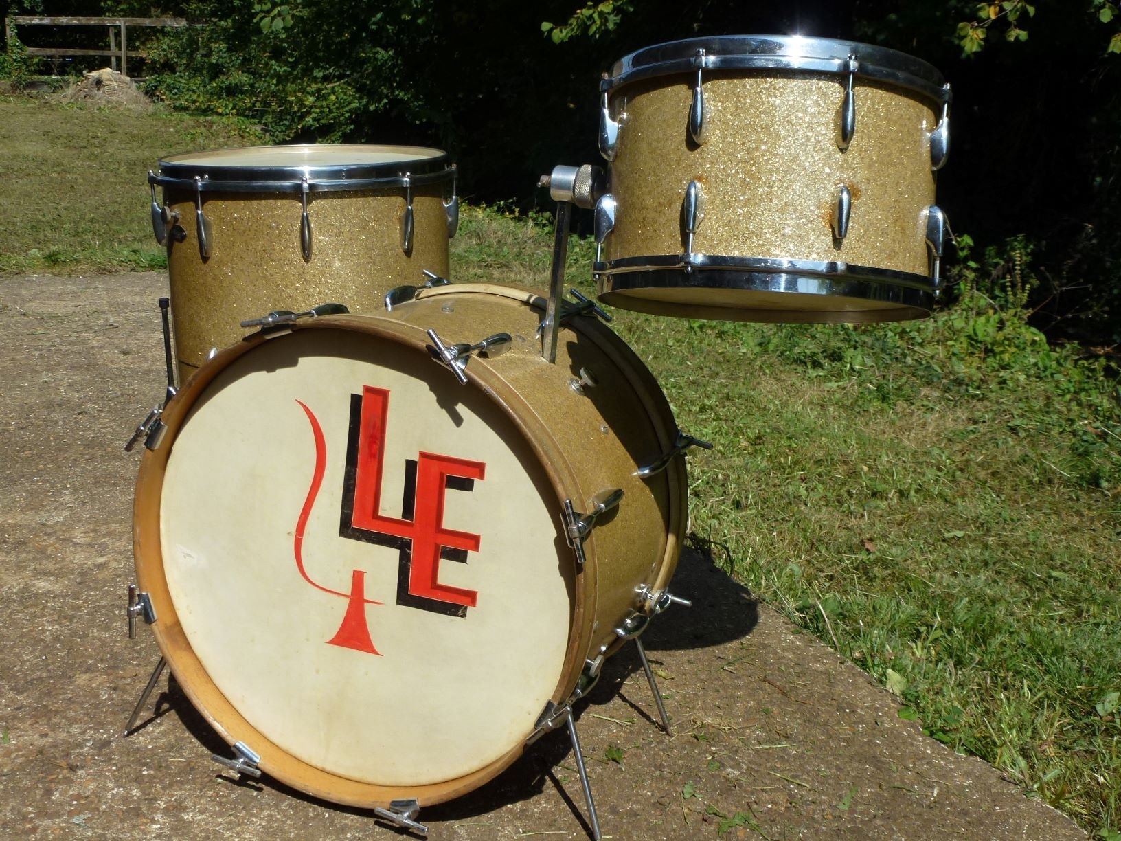 Ayé: j'ai nettoyé les peaux, remonté une réso animale sur le 13" (first ever), complémenté l'"extra-hole" par un évent chromé vissable et asiatique, brillanté tout l'accastillage du tom basse; ne me manquent plus que deux tirants à petite tête ronde fendue pour partir en tournée. je voudrais remercier ici ce putain de chat qui a si généreusement décoré les peaux de la grosse caisse et du tom basse de coulures de pisse bien jaunasses comme il faut, et qui passe pour cet exploit à la postérité numérique plus d'un demi-siècle après sa disparition.