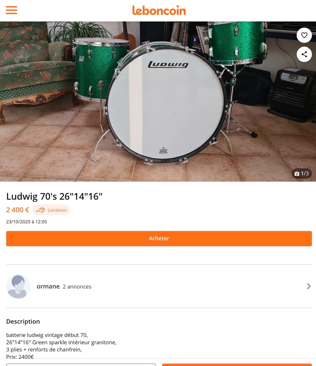 Ah celle là c'est une "vraie" ! et ce vert, si on peut ne pas l'apprécier, reste un trait caractéristique de Bonham - pour ceux qui ne sont pas restés bloqués sur la Vistalite.franfran a écrit : ↑dim. 22 nov. 2020, 21:38 https://www.leboncoin.fr/instruments_de ... 009697.htm