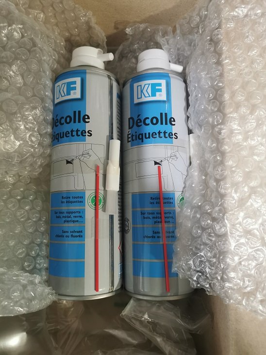 Comme technique, je recouvre la surface avec du papier absorbant, et je pulvérise un produit de type "décolle étiquette" il faut plusieurs passage car il y a un paquet de colle, mais ca nécessite tres peu de produit. et c'est inoffensif pour le support