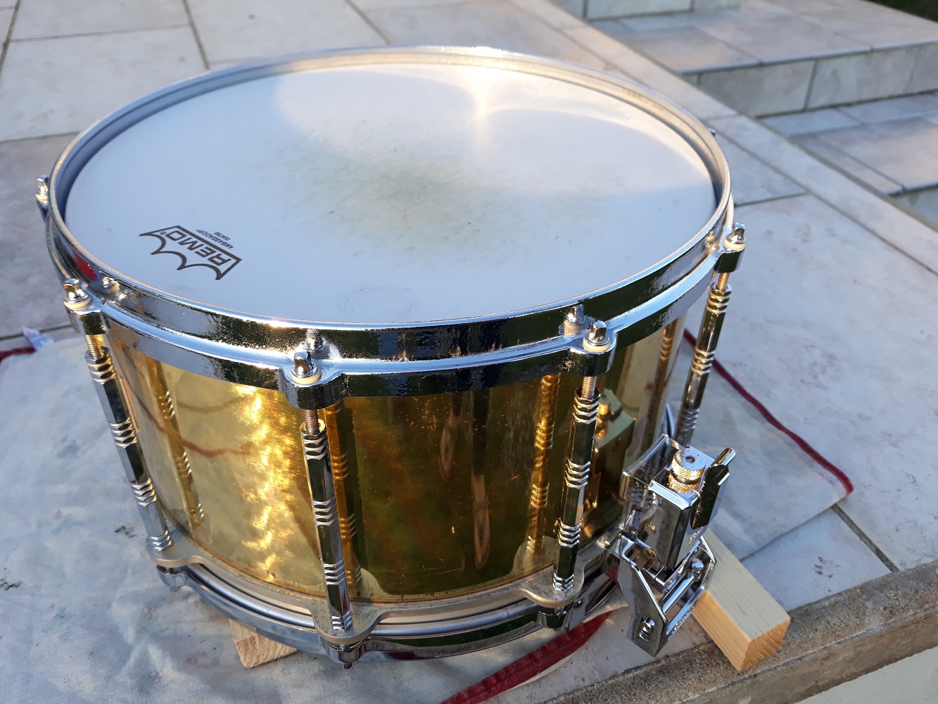Une Pearl free floating brass 1ère génération aux dimensions généreuses: 14x8". Elle a subi les outrages du temps mais sonne toujours bien, comme une free floating quoi