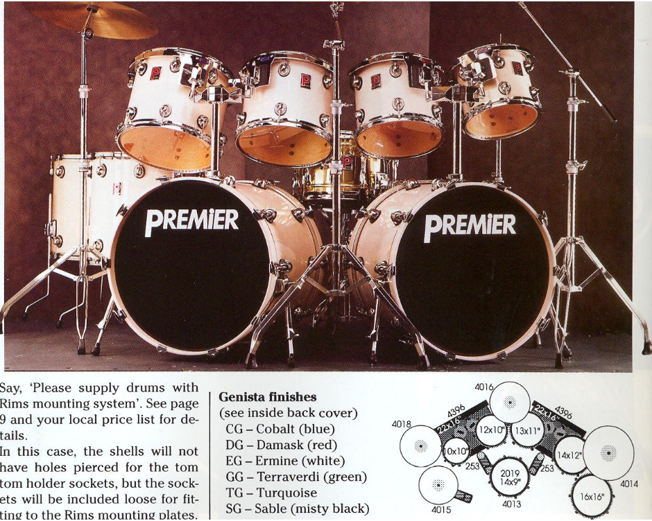 Matos : Premier Signia Coral White 10 fûts. Cymbales Sabian / Ufip