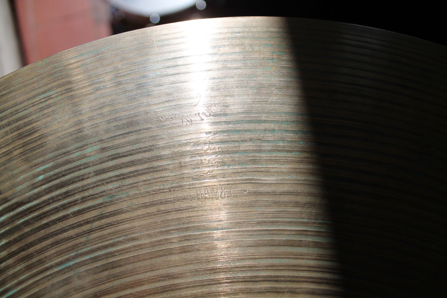 "Elle m'a été récemment ramenée de Turquie avec 4 autres exemplaires par mon ami turc importateur des cymbales Bosphorus et Impression pour le Benelux. Son oncle bossait pour Zildjian quand ils fabriquaient encore en Turquie. Aucun problème à ce sujet. Si ce sont des contrefaçons, j'en veux bien comme celles-ci tous les jours, aucune cymbale actuelle ne possède les qualités de cette K. Cela fait 14 ans que je me rends régulièrement en Turquie, et à discuter avec les patrons de chez Bosphorus par exemple, le rapport scientifique des Européens quant aux stamps sur les K turques les amuse beaucoup. Ça a toujours été un vrai bordel à ce niveau. C'est parce que ces cymbales ont pris de la valeur (chose à laquelle Zildjian n'avait pas pensé à cette époque) que l'on s'est intéressé à la datation des cymbales turques. J'ai posé la question de l'absence du K sur cette cymbale à mon ami David Grébil, qui m'a envoyé des photos de quelques-unes de ses K (pourtant plus anciennes) et sur lesquelles n'apparaissent pas ce fameux K, mais Zildjian & Co. et made in Turkey. Ce K importait peu, ce qui était fabriqué en Turquie était de toute façon des K.
