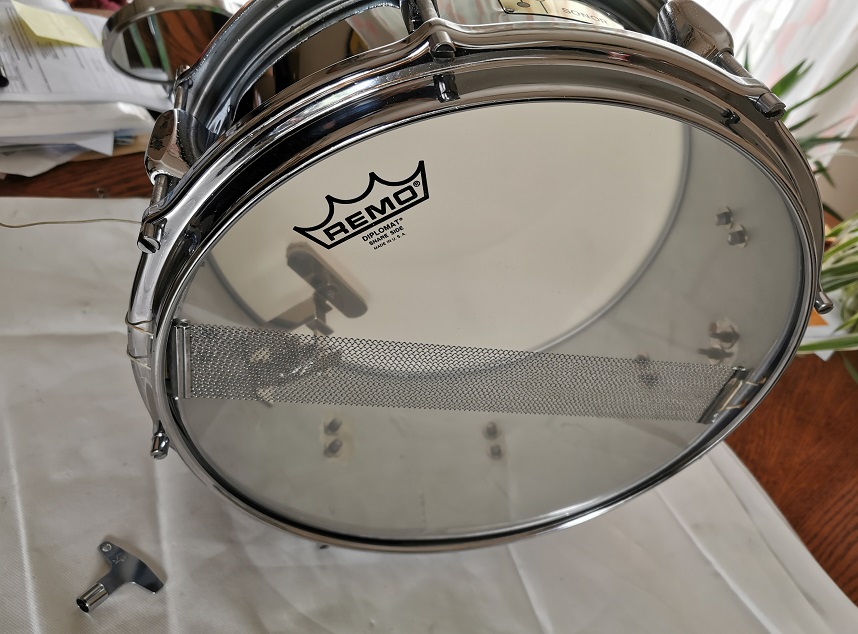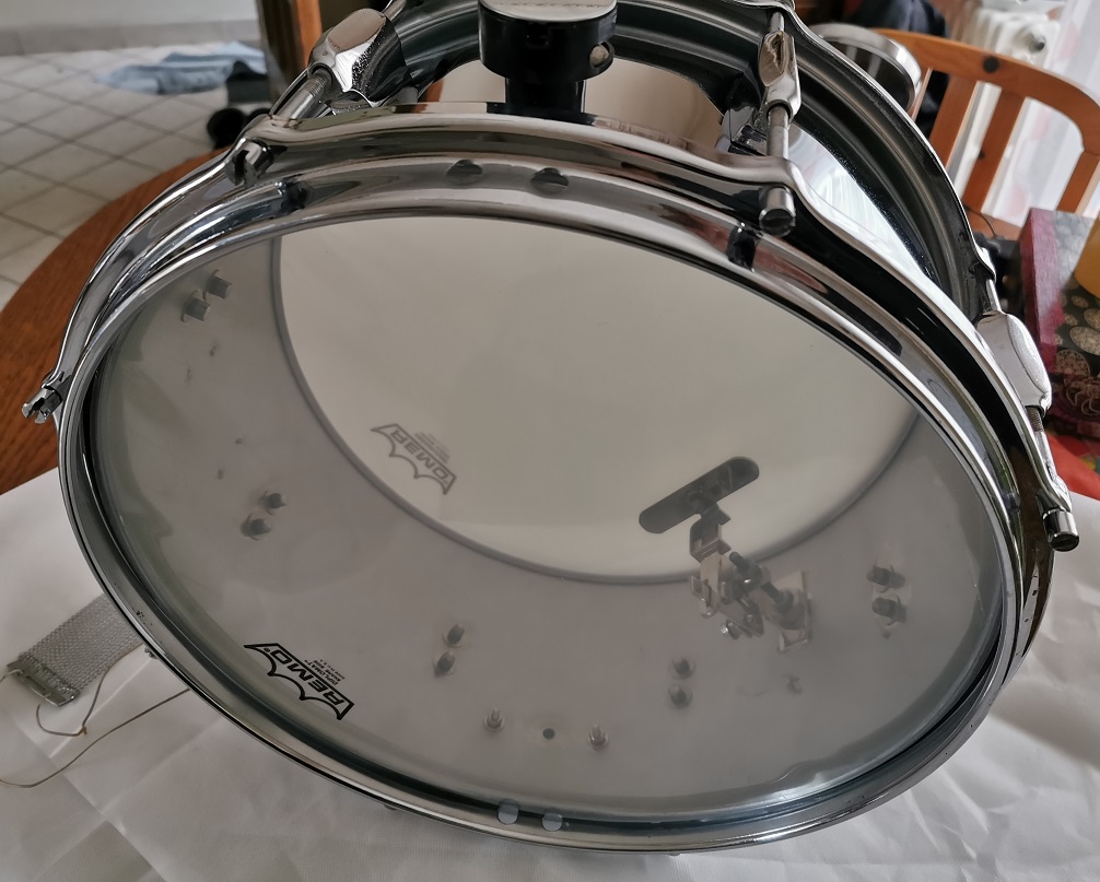 Je lui ai collé une REMO vintage coated en frappe et une diplomate snare side en timbre et c'est pas si mal . J'aime bien