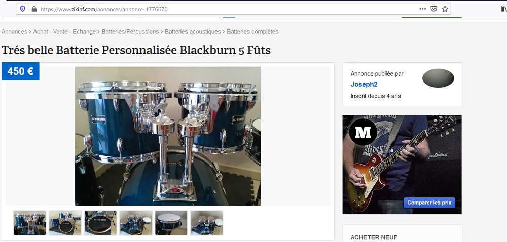 je lui ai envoyé un commentaire peu équivoque sur la réalité de ce qu'il vend: c'est du même niveau qualité-provenance que Alba Keiper Dimavery, etc: le kit que j'avais acheté il y a 15 ans à Fred "Garchi" Garcia coûtait neuf Thomann exactement 260€ livré: mêmes coquilles, mêmes rotules, rhodo, hardware et cymbales comprites.
